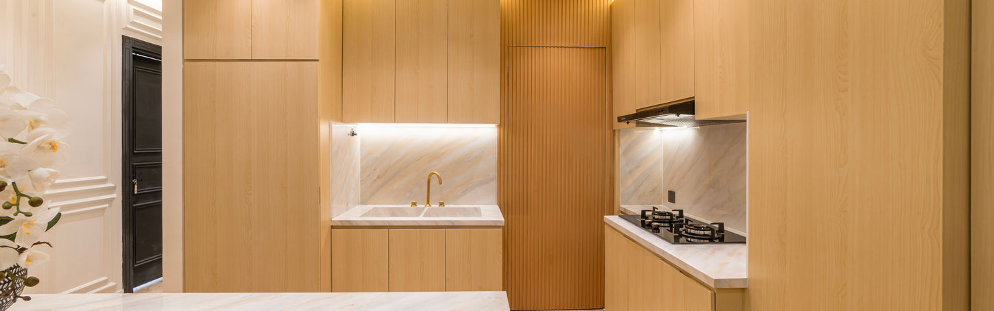 Even after 20 years of living abroad, Anton's love for Indonesia never faded. When Anton decided that he wanted a space to come home to whenever he is in Jakarta, we made sure to design his space to feel like an oasis in the middle of the hectic city. With luxurious touches, we created a space that connects people through a spacious kitchen and an iconic island. The elegance and luxury vision of his for his sanctuary was complimented with minimalist fitted furniture to make sure that the space are kept tidy at all times even when he is going back and forth between countries.